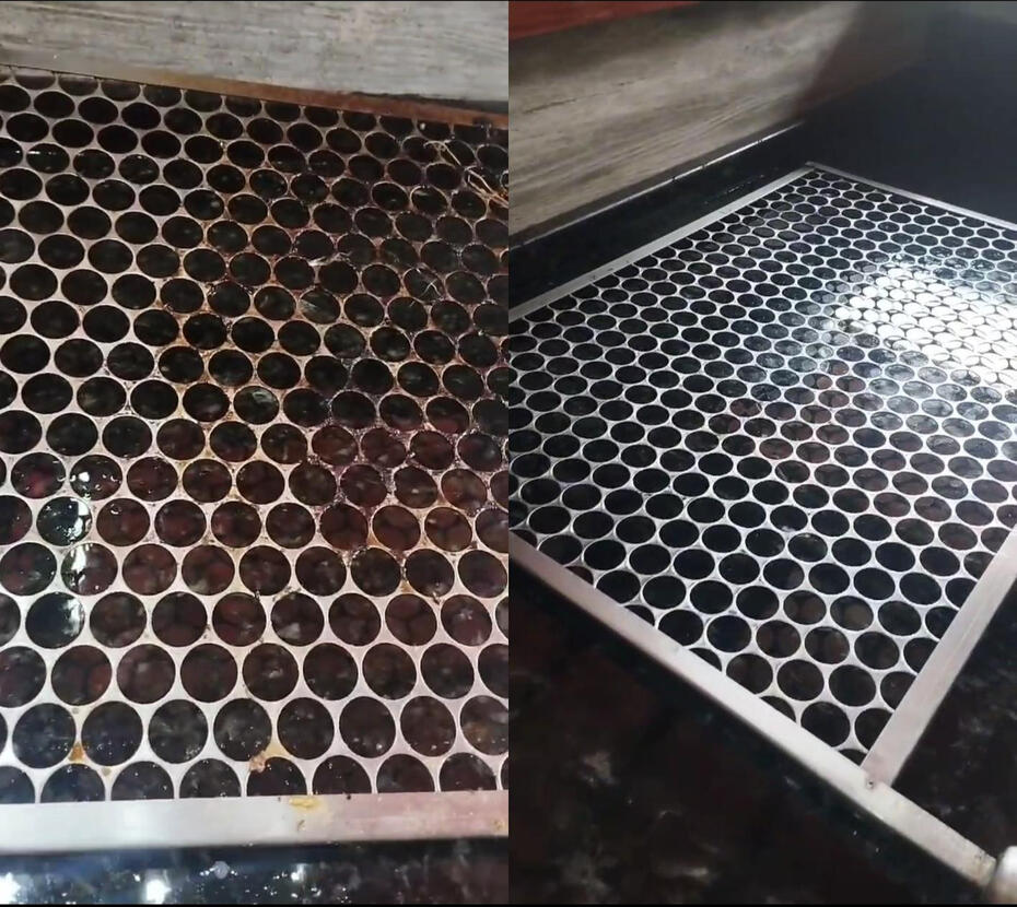 LIMPEZA DE GRELHA ENGORDURADA E CARBONIZADA. PRODUTO UTILIZADO: REMOVEDOR ALCALINO